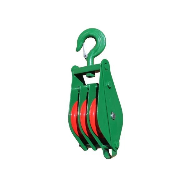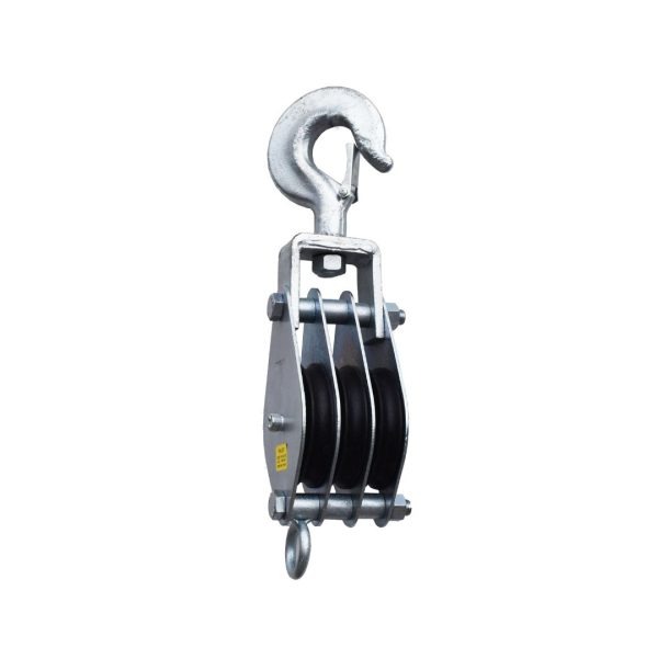 POLEA TRIPLE GALVANIZADA CON PESTILLO ROLDANA NYLON