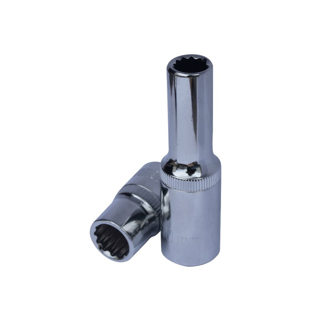 Copa larga 12 puntas CR-VAN, resistente y precisa para espacios profundos. Ideal en trabajos mecánicos e industriales exigentes.