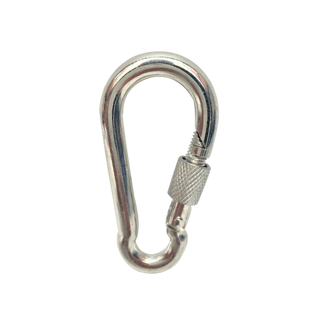 Mosquetón de alta resistencia para sujeción segura. Ideal para cargas, deportes, ferretería o uso industrial.
