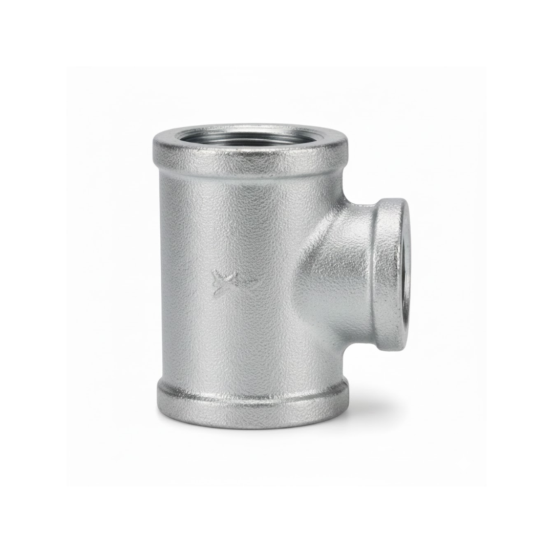 Tee Reducida Galvanizada de hierro maleable. Permite derivaciones a menor diámetro con máxima resistencia al óxido y durabilidad.
