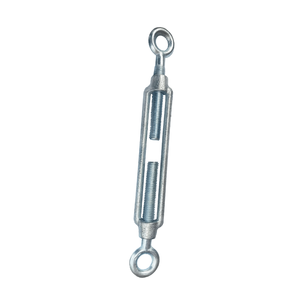 Tensor maleable doble ojo, ideal para tensar cables con máxima estabilidad. Resistente, seguro y fácil de instalar en estructuras livianas o medianas.