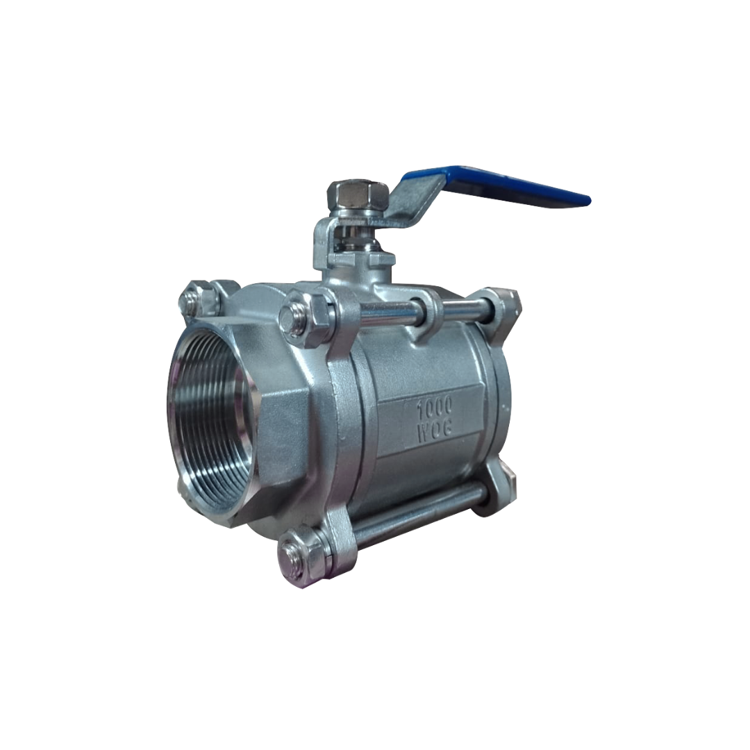 Válvula de bola en acero inoxidable con 4 tornillos, segura y duradera para control de fluidos en sistemas exigentes.